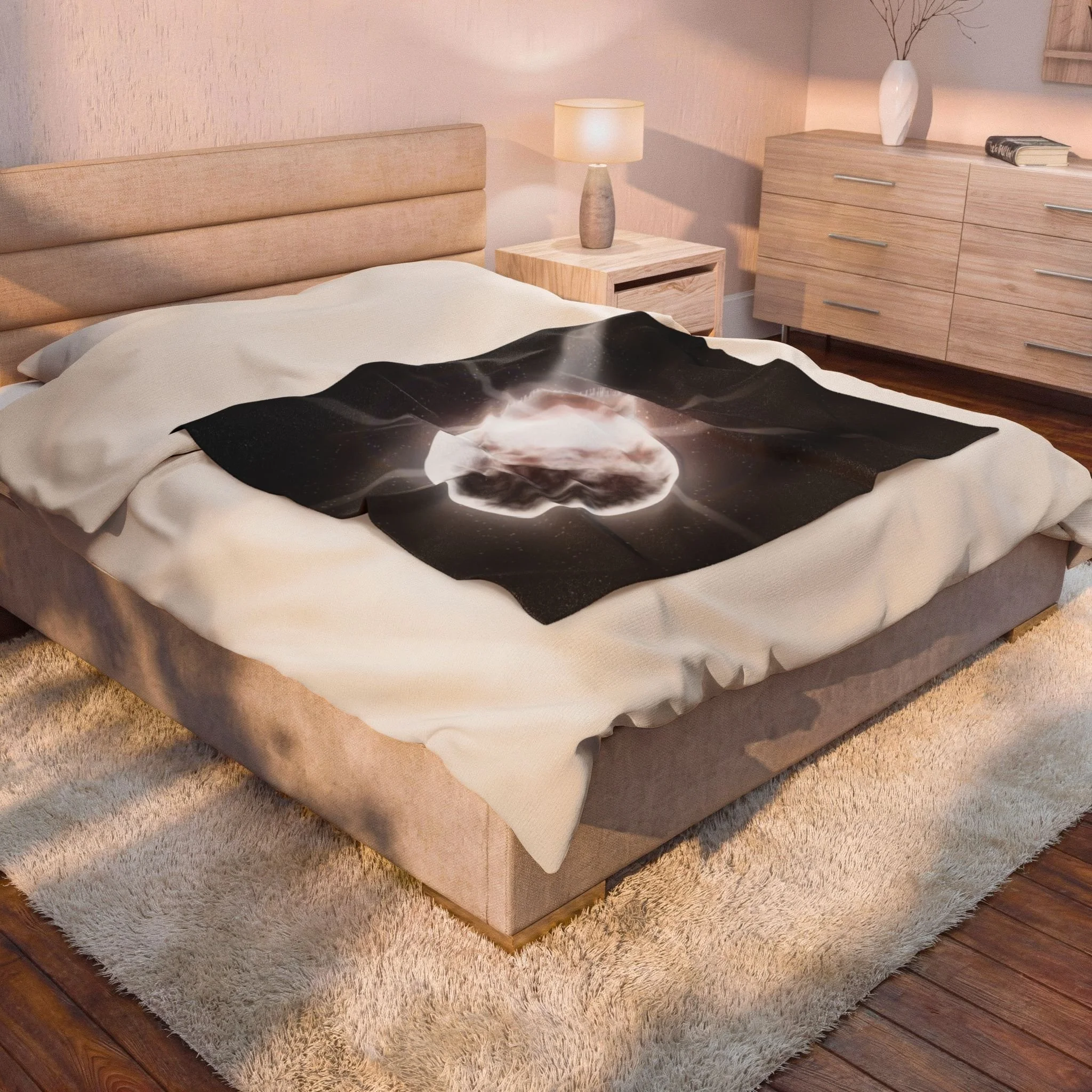 A velvety, art-forward blanket that feels like a hush of midnight on your skin. The medium-heavy polyester nap holds rich grayscale detail so the haunting illustration — a seated, nude figure wearing an antlered skull — reads with depth and texture. Draped over a couch, layered on a bed, or folded at the foot of a reading chair, it invites quiet moments: candle-lit sketching sessions, slow Sunday mornings, or late-night film watching with a moody playlist on. The fabric is plush and slightly weighty, so it warms without feeling bulky. The single-sided, high-detail print keeps the image sharp while the reverse stays soft and subtle. Durable double-needle topstitching means the blanket looks cared-for night after night, and the materials meet safety and compliance standards for peace of mind.