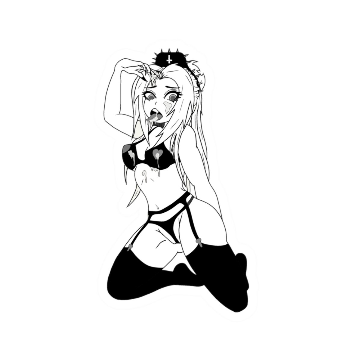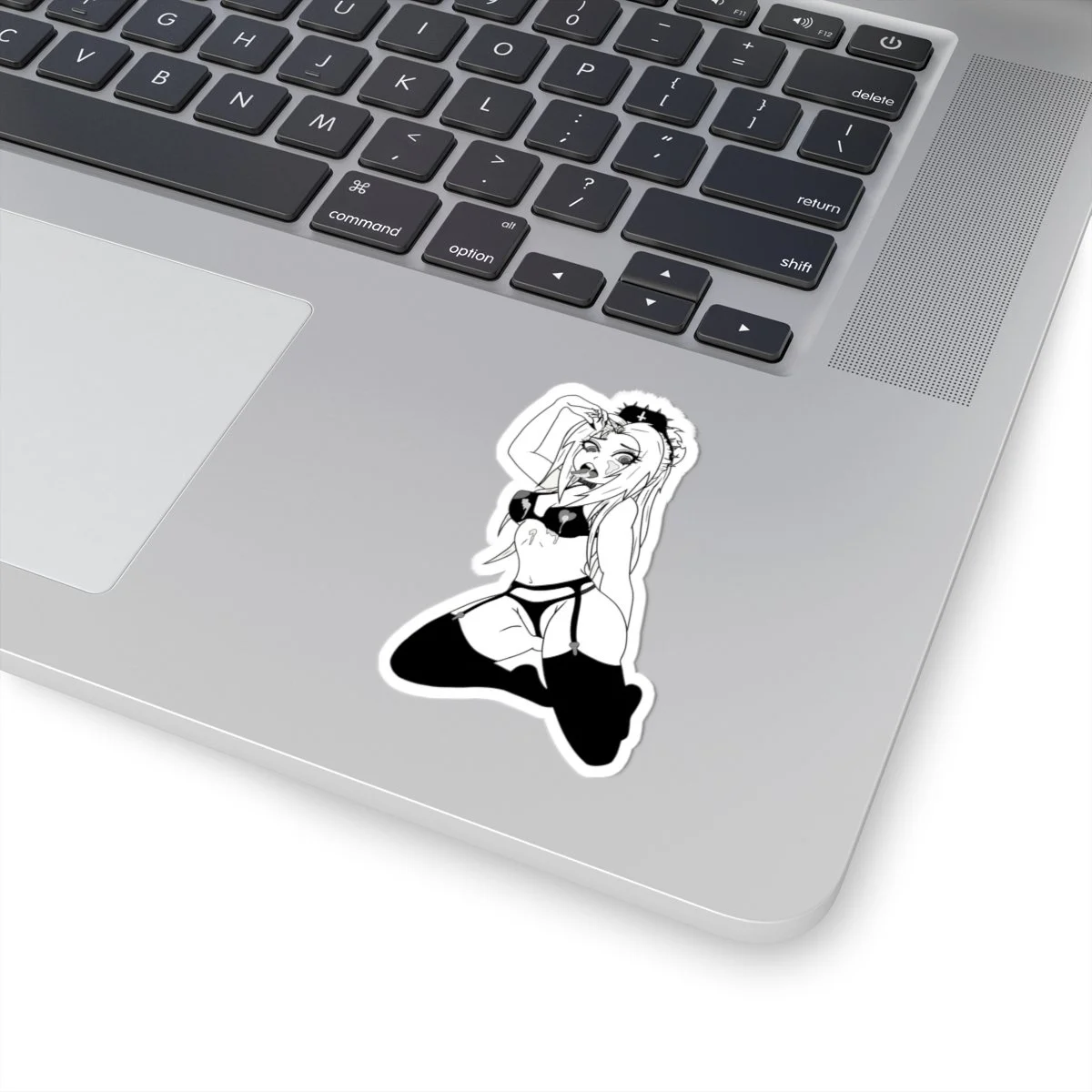 A striking glossy kiss-cut sticker that blends dark folklore with modern edge. This monochrome design shows a kneeling female figure wearing a stag skull headdress—moody, mysterious, and intentionally bold. The smooth glossy finish makes the shadowed details pop, while the durable vinyl and strong permanent adhesive keep it firmly in place on flat surfaces like laptops, journals, and sketchbooks. Choose white or transparent backing and from four sizes to find the fit that complements your gear. This sticker suits those who love occult-inspired art, neo-folk aesthetics, and curated personal collections—add it to a ritual altar, a laptop that travels to shows, or a journal full of sketches and midnight thoughts.