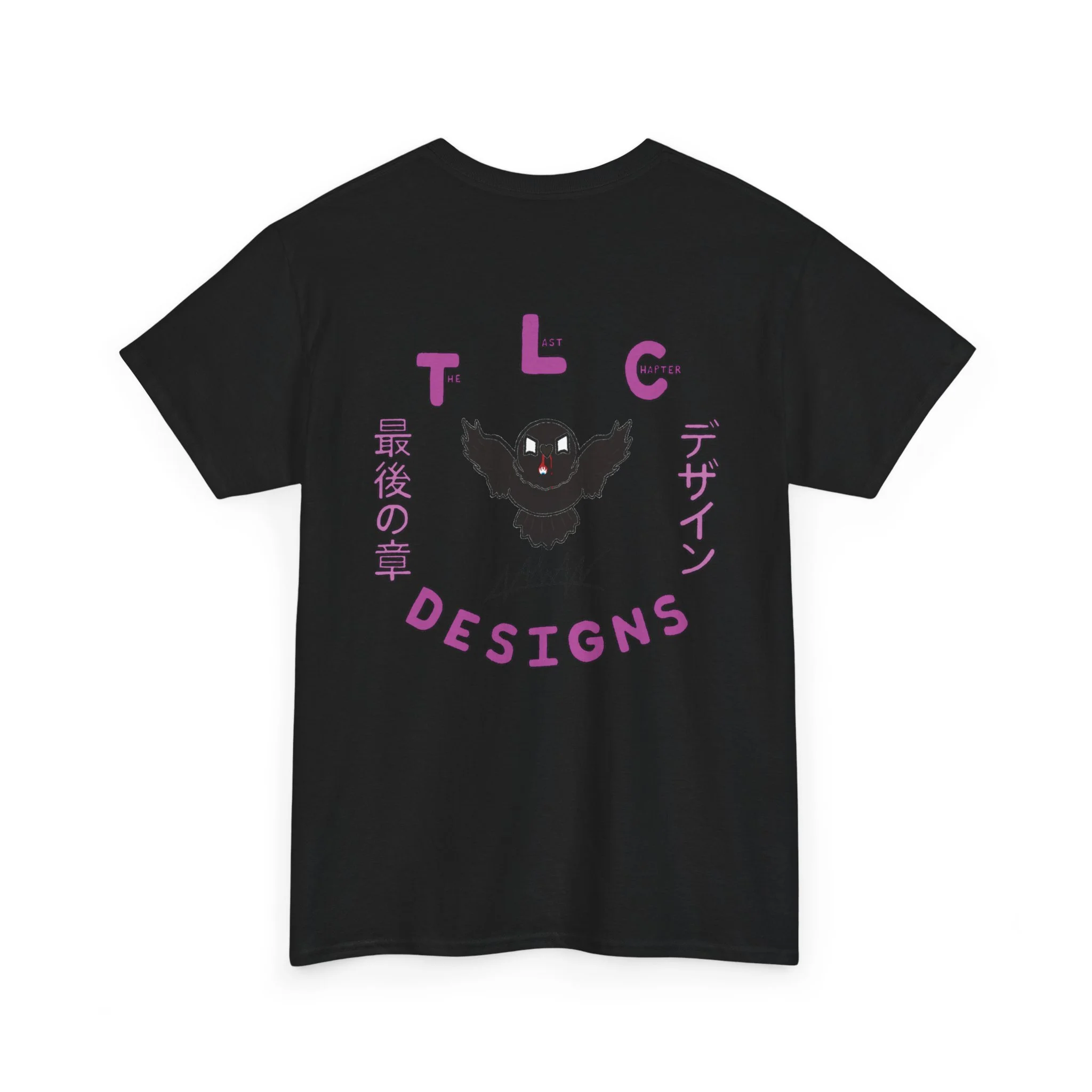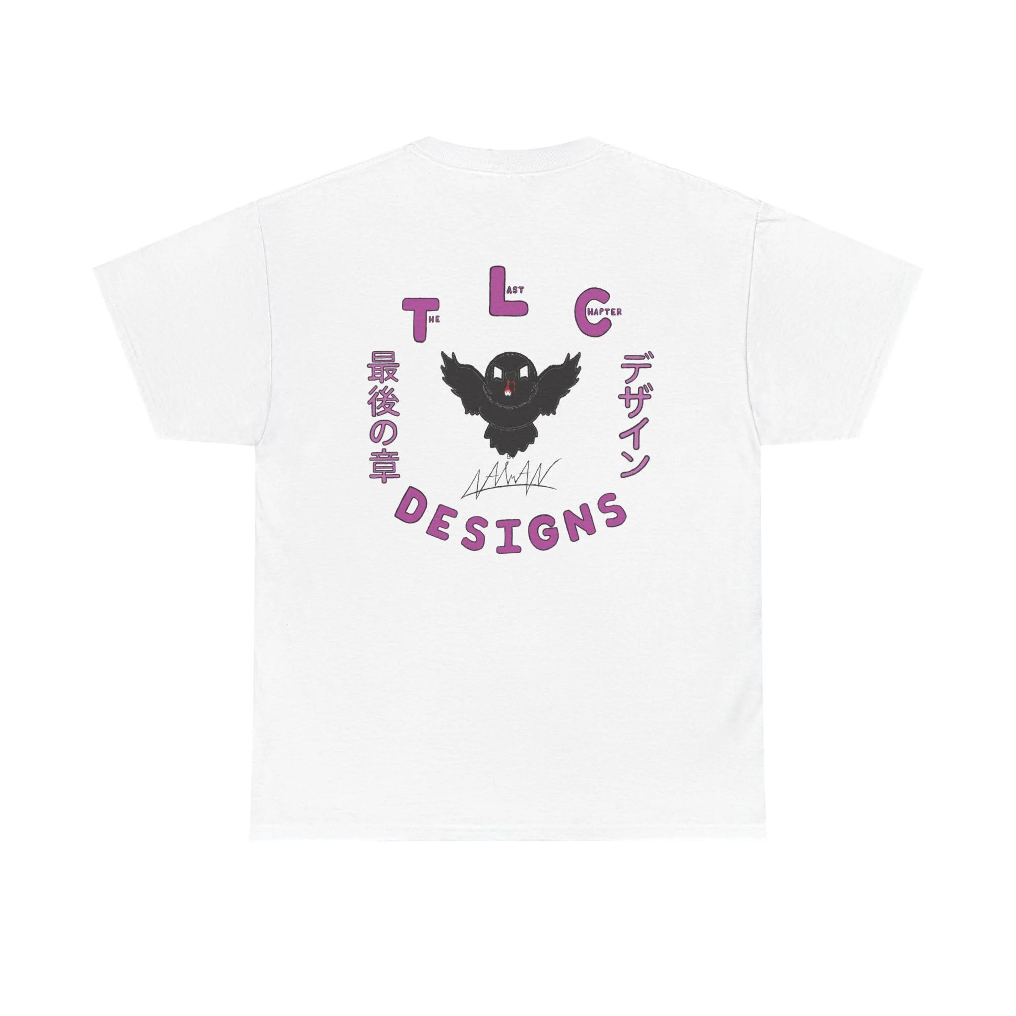 This cotton tee carries a raw, underground edge — a soft white canvas printed with bold grayscale art that leans punk and streetwear. The front shows a defiant, sketch-like figure seated low, while the back features a snarling raven framed by gothic banners reading a maker’s name. It feels lived-in and expressive: the kind of shirt you reach for when you want your outfit to speak without shouting. Lightweight but sturdy, it layers easily under a denim jacket or wears alone with ripped jeans. Wear it to shows, late-night hangs, or when you want to bring a bit of gritty attitude to a quiet day.