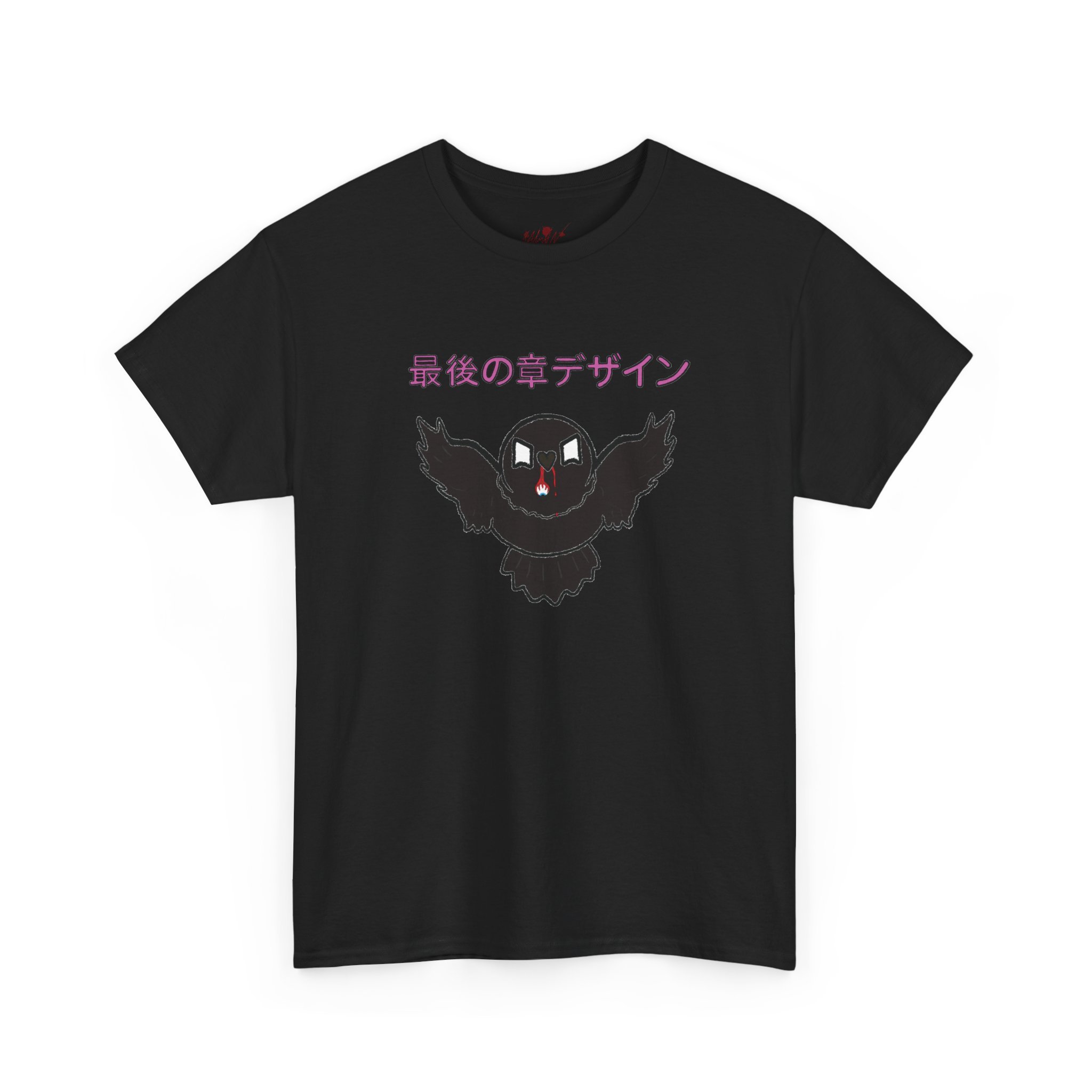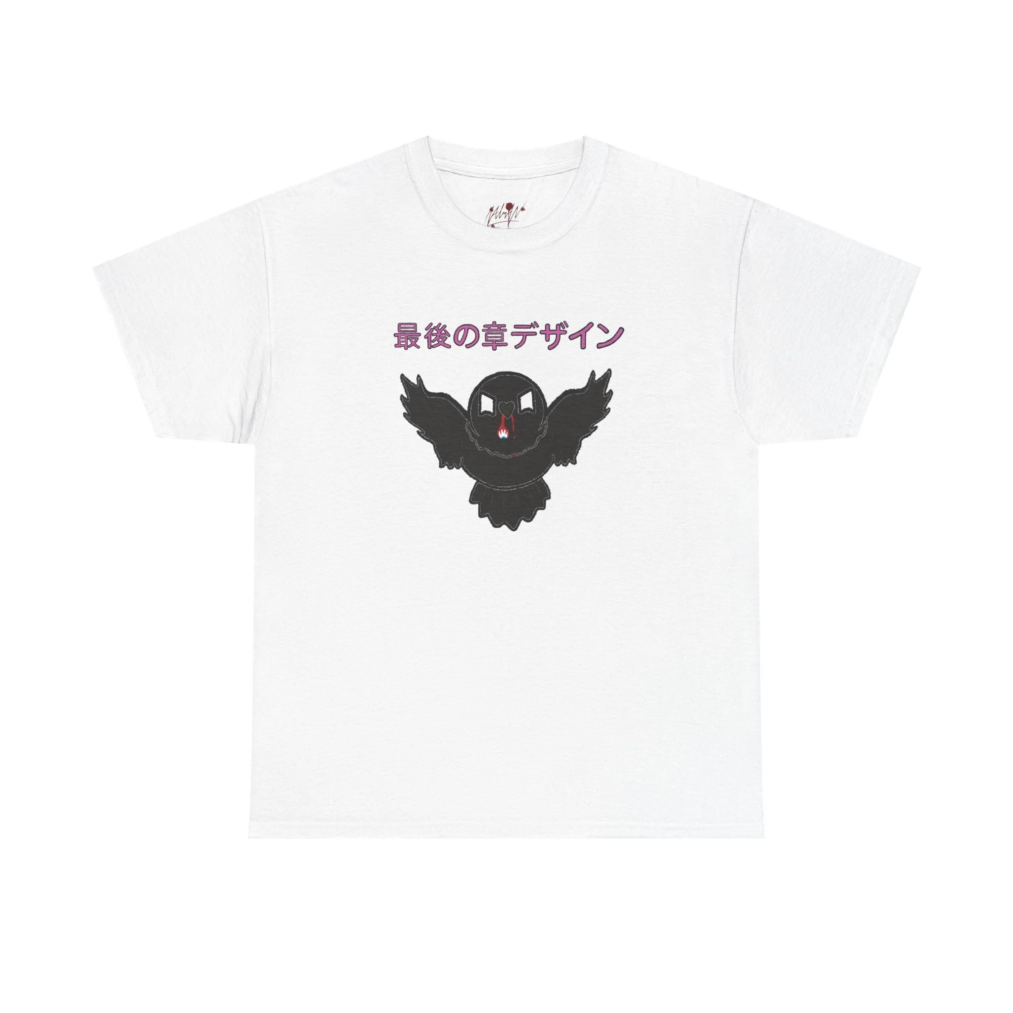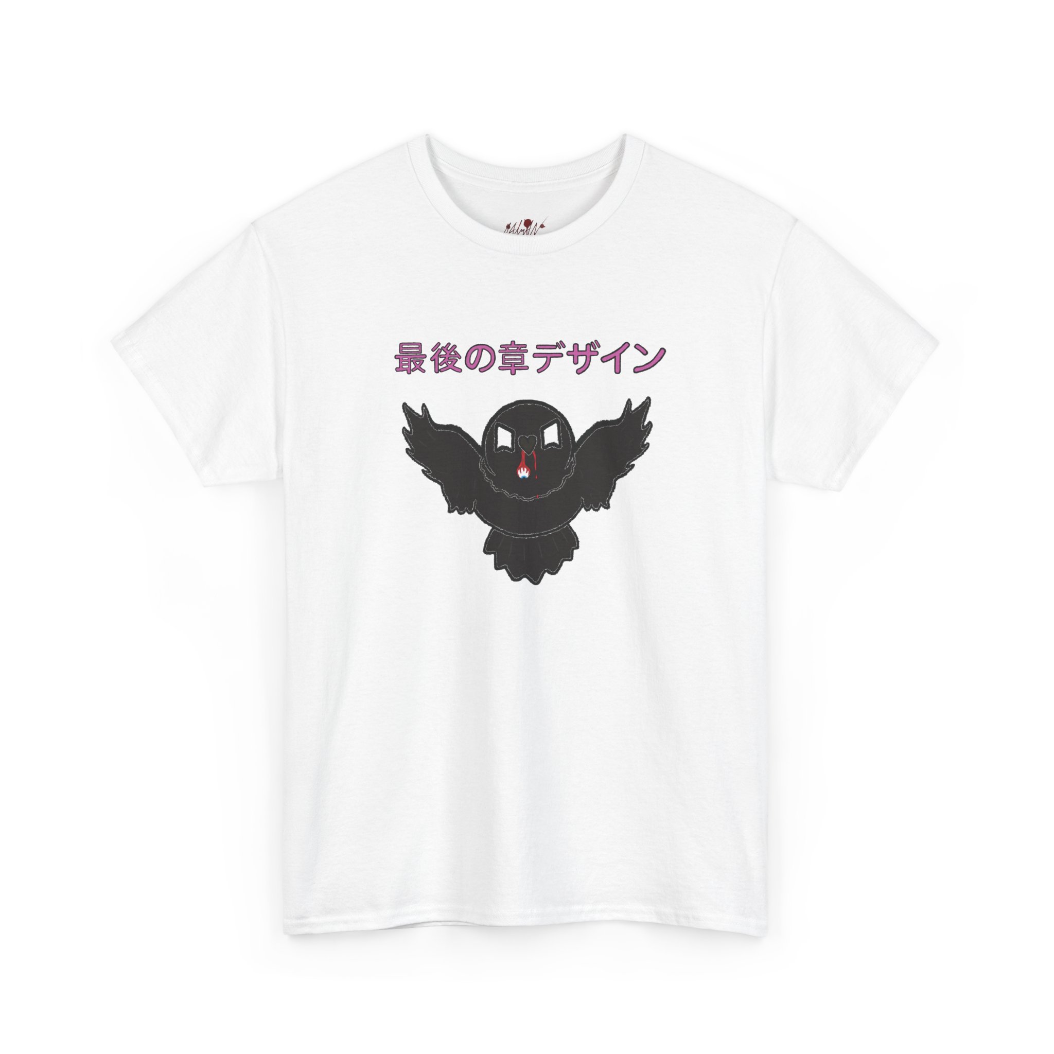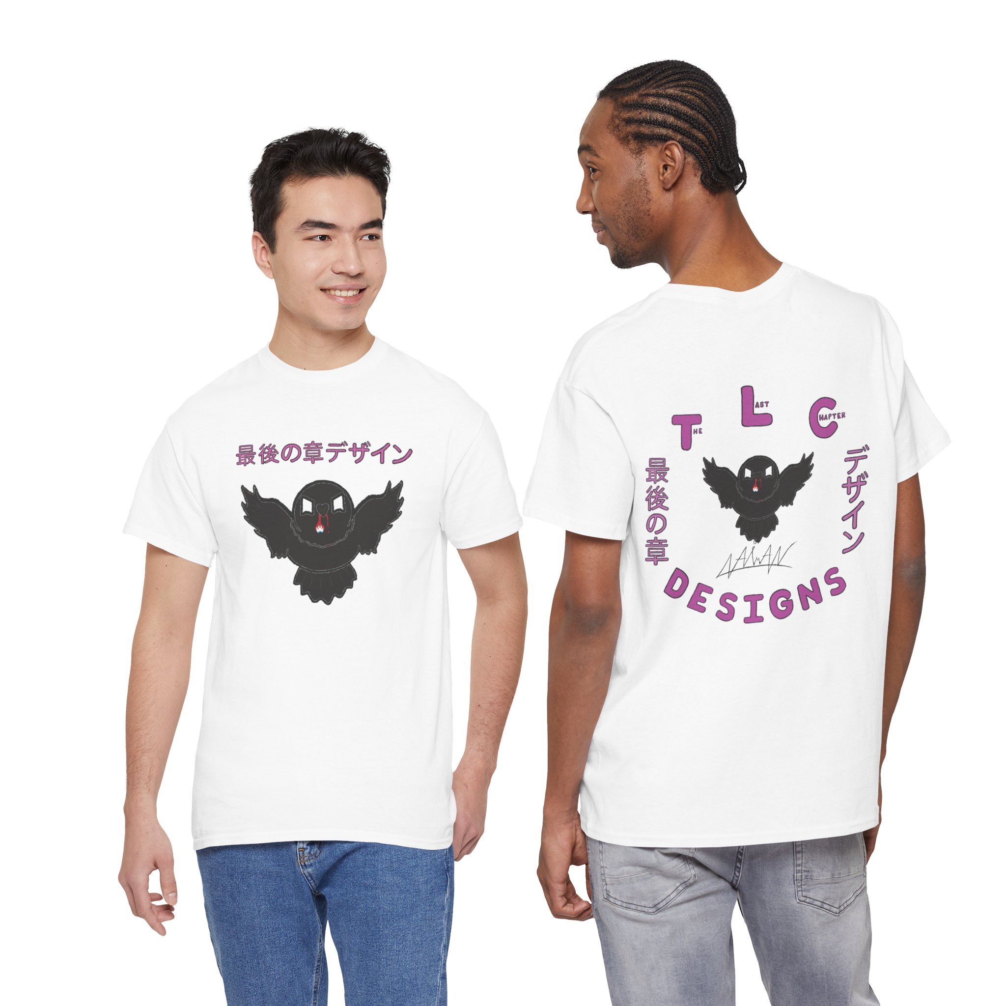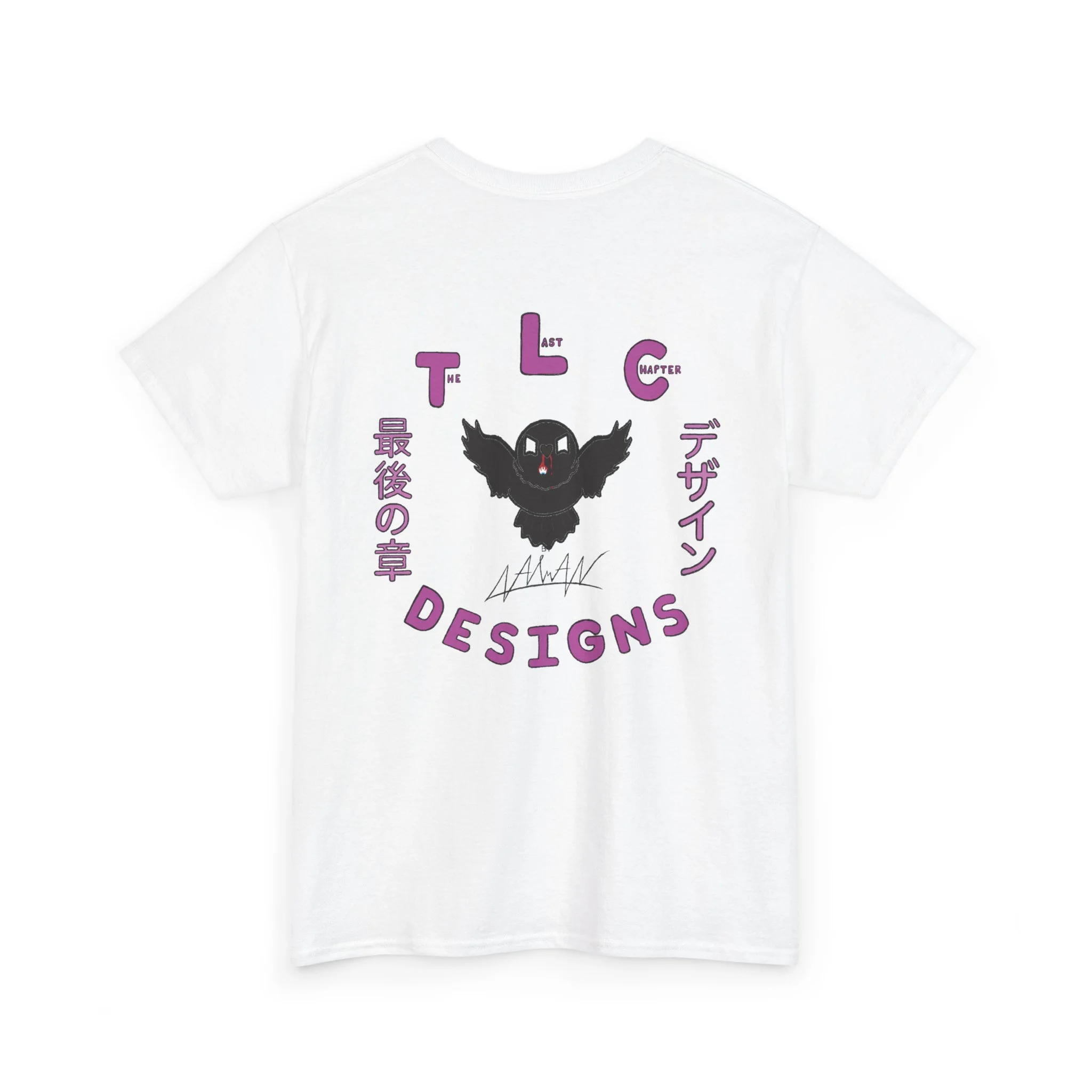 This cotton tee carries a raw, underground edge — a soft white canvas printed with bold grayscale art that leans punk and streetwear. The front shows a defiant, sketch-like figure seated low, while the back features a snarling raven framed by gothic banners reading a maker’s name. It feels lived-in and expressive: the kind of shirt you reach for when you want your outfit to speak without shouting. Lightweight but sturdy, it layers easily under a denim jacket or wears alone with ripped jeans. Wear it to shows, late-night hangs, or when you want to bring a bit of gritty attitude to a quiet day.
