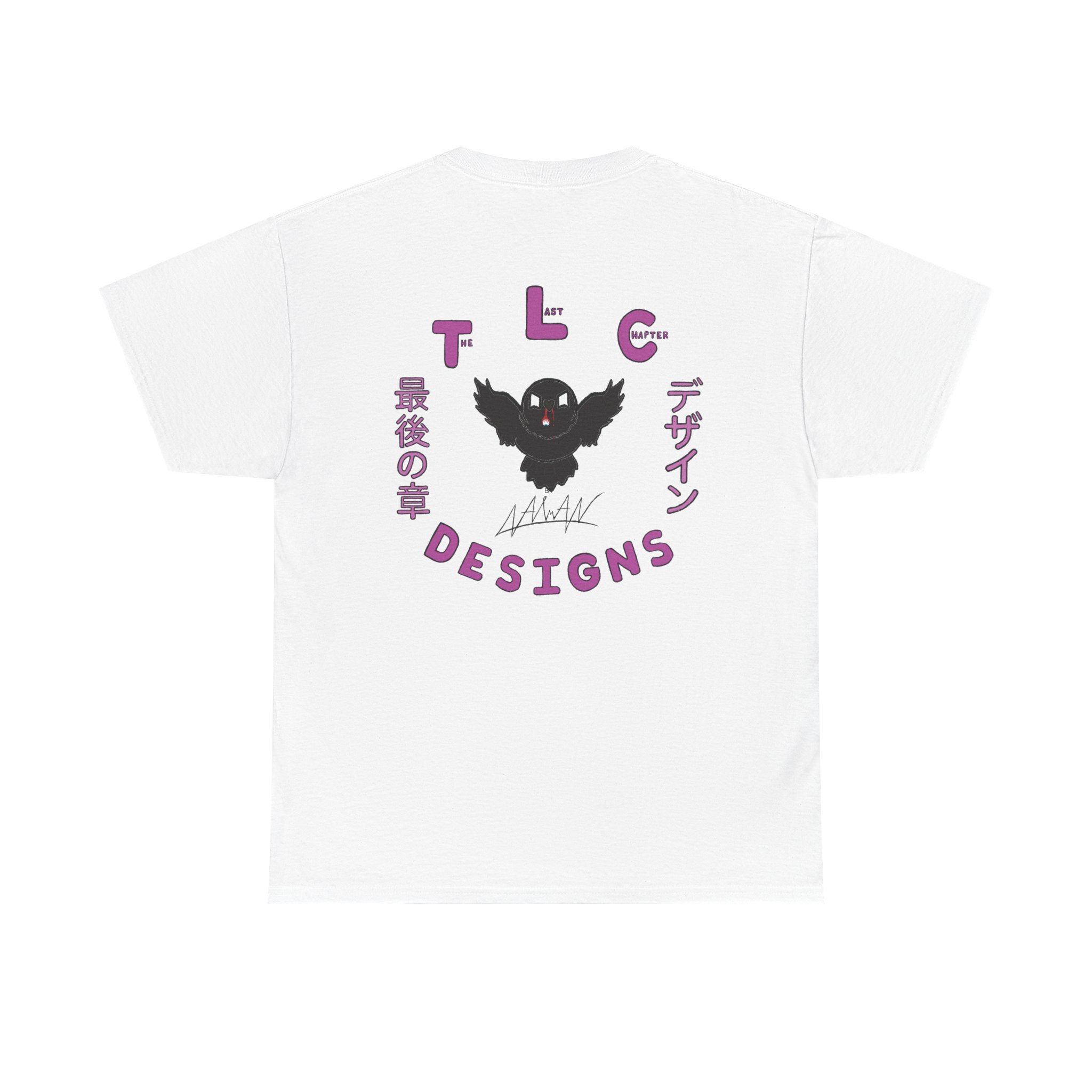 This cotton tee carries a raw, underground edge — a soft white canvas printed with bold grayscale art that leans punk and streetwear. The front shows a defiant, sketch-like figure seated low, while the back features a snarling raven framed by gothic banners reading a maker’s name. It feels lived-in and expressive: the kind of shirt you reach for when you want your outfit to speak without shouting. Lightweight but sturdy, it layers easily under a denim jacket or wears alone with ripped jeans. Wear it to shows, late-night hangs, or when you want to bring a bit of gritty attitude to a quiet day.
